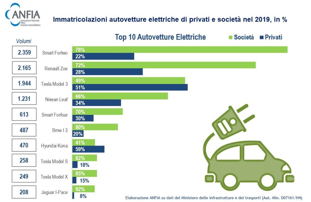 Il podio delle AUTOVETTURE BEV più vendute nel 2019 (elaborazione ANFIA) ha incoronato: